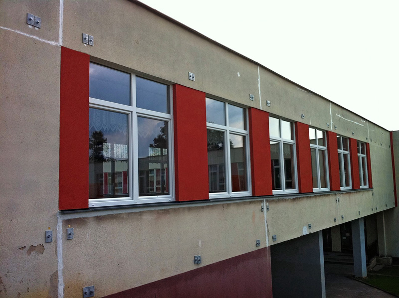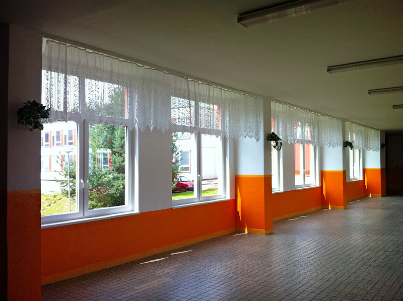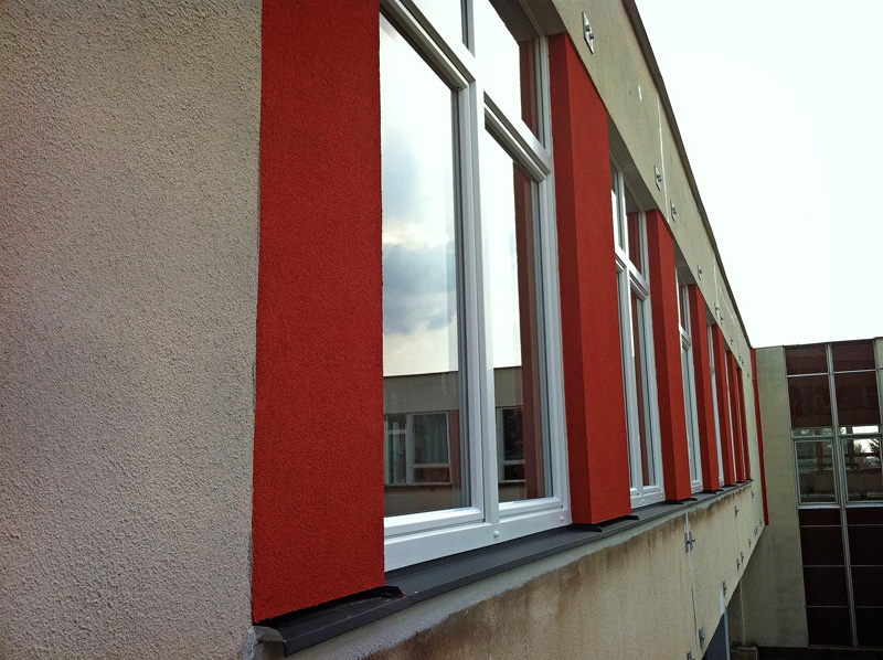 Statické zajištění fasády, výměna oken a meziokenních vložek ZŠ 28.října Česká Lípa - II. etapa sekce SO (spojovací krček). |